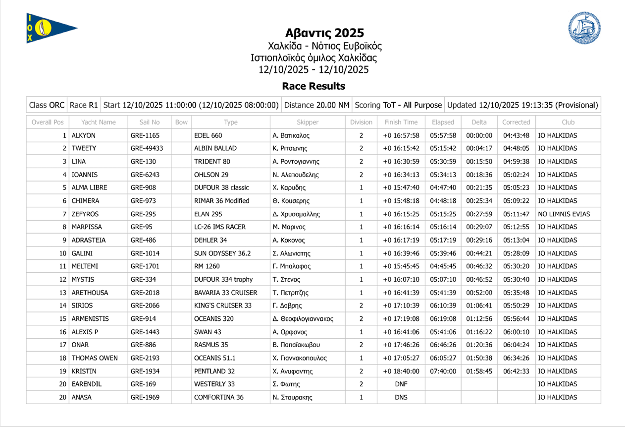 ΑΠΟΤΕΛΕΣΜΑΤΑ ΑΓΩΝΑ ΑΒΑΝΤΙΣ 2025