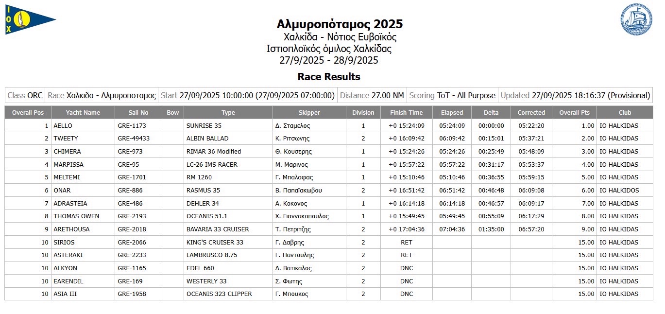 ΑΠΟΤΕΛΕΣΜΑΤΑ ΑΓΩΝΑ ΑΛΜΥΡΟΠΟΤΑΜΟΣ 2025